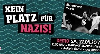 Das Bündnis „braunau gegen rechts“ ruft am Samstag, dem 22. April 2017, zu einem breiten und entschlossenen antifaschistischen Protest auf. Gehen wir gemeinsam auf die